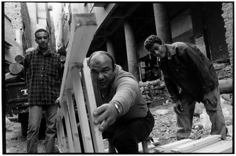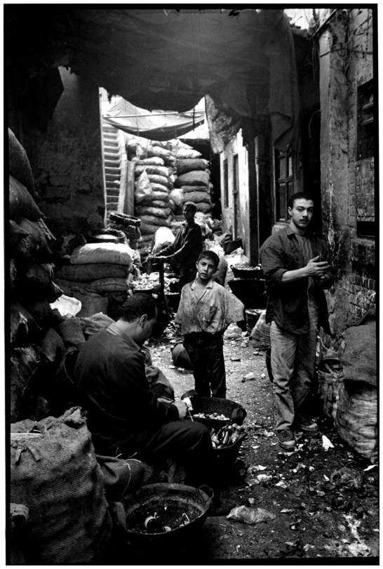 C'est Ramadan. Pendant la journée, les cafés sont quasiment tous fermés. Les exceptions sont rares, trop rares. Avec Oskar, un sympathique Suédois rencontré dans Al Goureya et que la vision du Rolleiflex pendu à mon cou avait intrigué, nous décidons d'aller ensemble dans la Cité des Morts dont nous n'explorons qu'une infime partie, non sans nous faire inviter par les habitants de cet étrange morceau de ville à manger quelques fruits ou boire un thé. De retour dans le centre, on nous hèle pour nous inviter à manger à la table des voyageurs, en pleine rue. Devant préparer l'exposition collective qui doit être consacrée aux "Hommes et femmes de Haute-Egypte", je ne reste pas longtemps au Caire. Et me voilà à sillonner Assouan dans tous les sens, à pied, en service-taxi, à faire connaissance de tous les quartiers environnants où les gens habitent et travaillent aussi. Les Assouanis n'en reviennent pas que je puissse aller me promener à Kima ou, pire, à El Mahmoudiya, ce quartier d'immeubles d'habitations, une cité dortoir très laide comme l'Egypte sait en produire dans l'urgence pour loger ceux qui abandonnent les campagnes pour trouver la survie dans les villes. Ces cités pullulent notamment autour du Caire. |