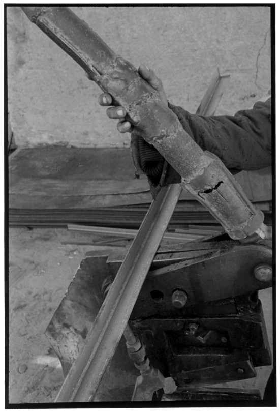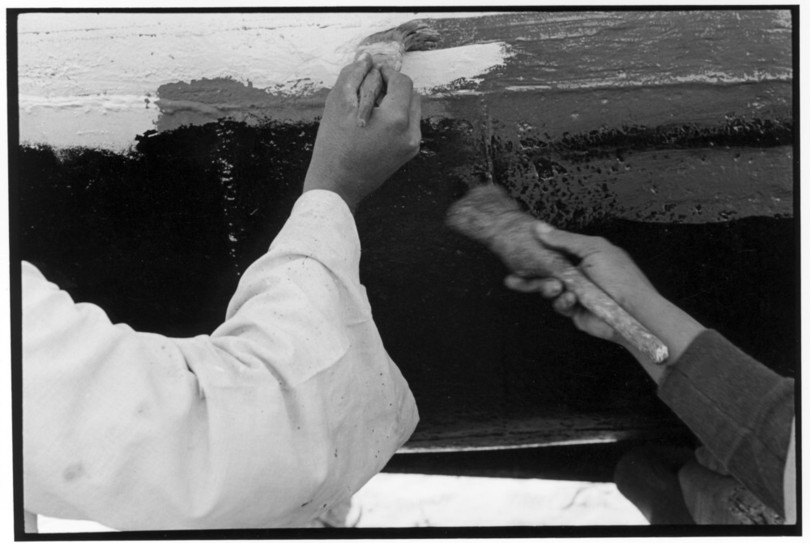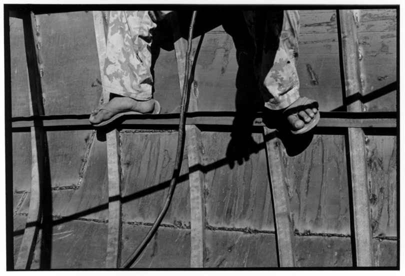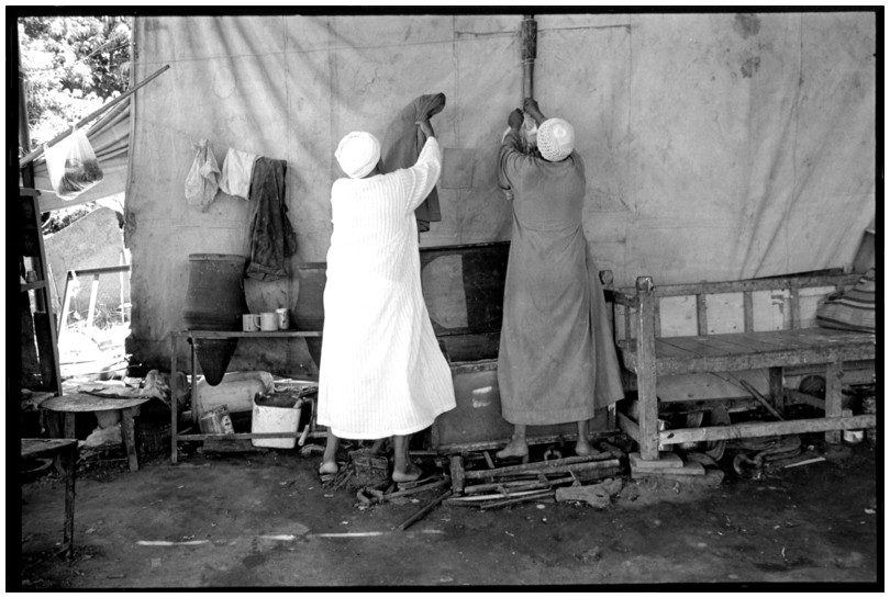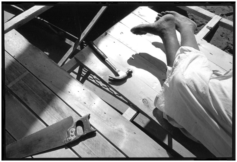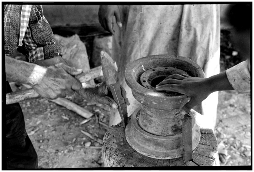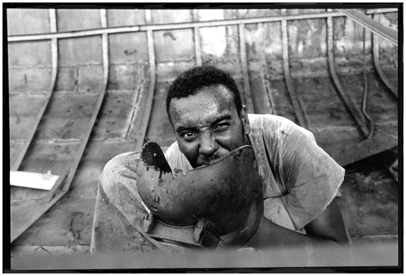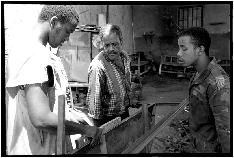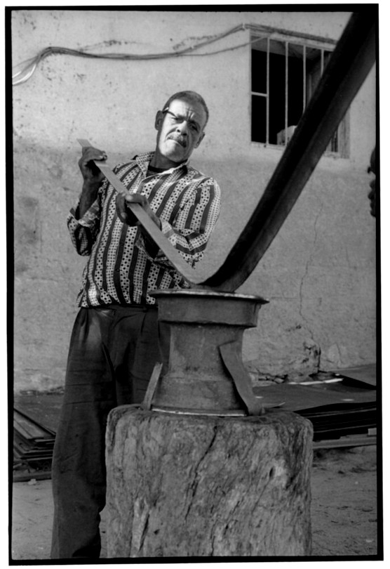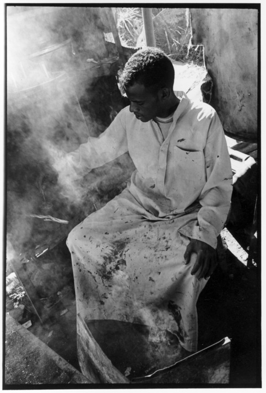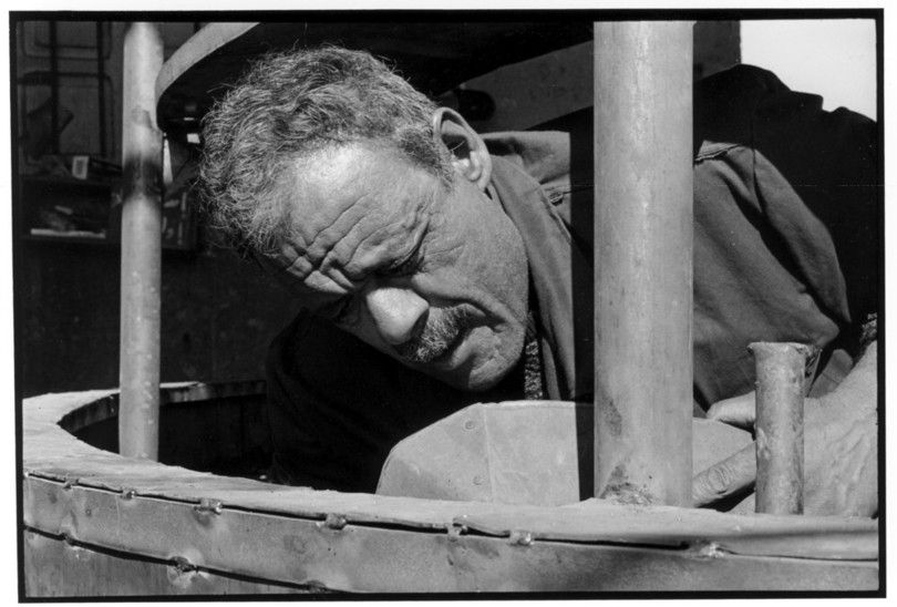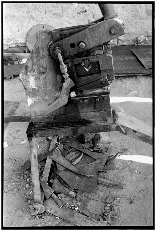 De nos jours, on y construit beaucoup plus de coques de bateaux à moteur que de felouques. De plus, la fabrication de coques en bois a quasiment disparu pour des raisons pratiques et économiques. Le bois est devenu rare et cher, même si le développement du téléphone portable a mis de nombreux poteaux télégraphiques sur le marché qui peuvent être utilisés pour le mât et les vergues. Par ailleurs, une coque en acier nécessite moins d'entretien qu'une coque en bois qui doit être repeinte au moins une fois par an. Une des conséquences de cette évolution est la disparition du savoir-faire des charpentiers de marine. Les coques métalliques sont fabriquées par assemblage soudé de nervures aux courbures formées à la masse et sur lesquelles sont soudées des plaques découpées et éventuellement formées à la masse également. L'outillage est minimal. Sur le terrain caillouteux qui descend en pente douce vers le Nil, on voit surtout des masses, des instruments de soudage à l'arc à électrode consommable, des serre-joints pour serrer les plaques à la structure lors du soudage, une grande cisaille pour découper profilés et tôles, une roue de camion servant d'enclume cylindrique posée sur une section de tronc d'arbre. Et puis, au moment de souder la plaque tenant lieu de tableau arrière pour la coque, Saad, le chef d'atelier, sort un niveau à bulle qu'on ne reverra pratiquement plus. Une fois terminées, les coques sont peintes, puis treuillées jusqu'au fleuve, une manoeuvre plus aisée en été qu'en hiver car l'eau est au plus haut en juillet et août et au plus bas en décembre. Les menuisiers viennent alors garnir de planches le fond de la coque et faire le toit. D'autres détails, enjoliveurs de de bastingage par exemple, sont aussi réalisés lorsque le bateau est à l'eau. Les photos proposées ici ont été prises principalement au chantier d'Assouan Ouest lors de plusieurs séjours depuis l'hiver 2001-2002 à l'hiver 2003-2004. Durant chaque séjour qui a duré d'une dizaine de jours à trois semaines, je suis venu au chantier au moins tous les deux jours pour y passer la journée et partager le temps avec ceux qui y travaillent. Le patron du chantier s'appelle Saïd. Il possède aussi les chantiers d'El Mansouria. Son frère et ses fils travaillent ici ou là. On y mange ensemble assis par terre, on y fait et boit le thé. Certains dorment sur place, couchés sur les banquettes et sous des couvertures. |